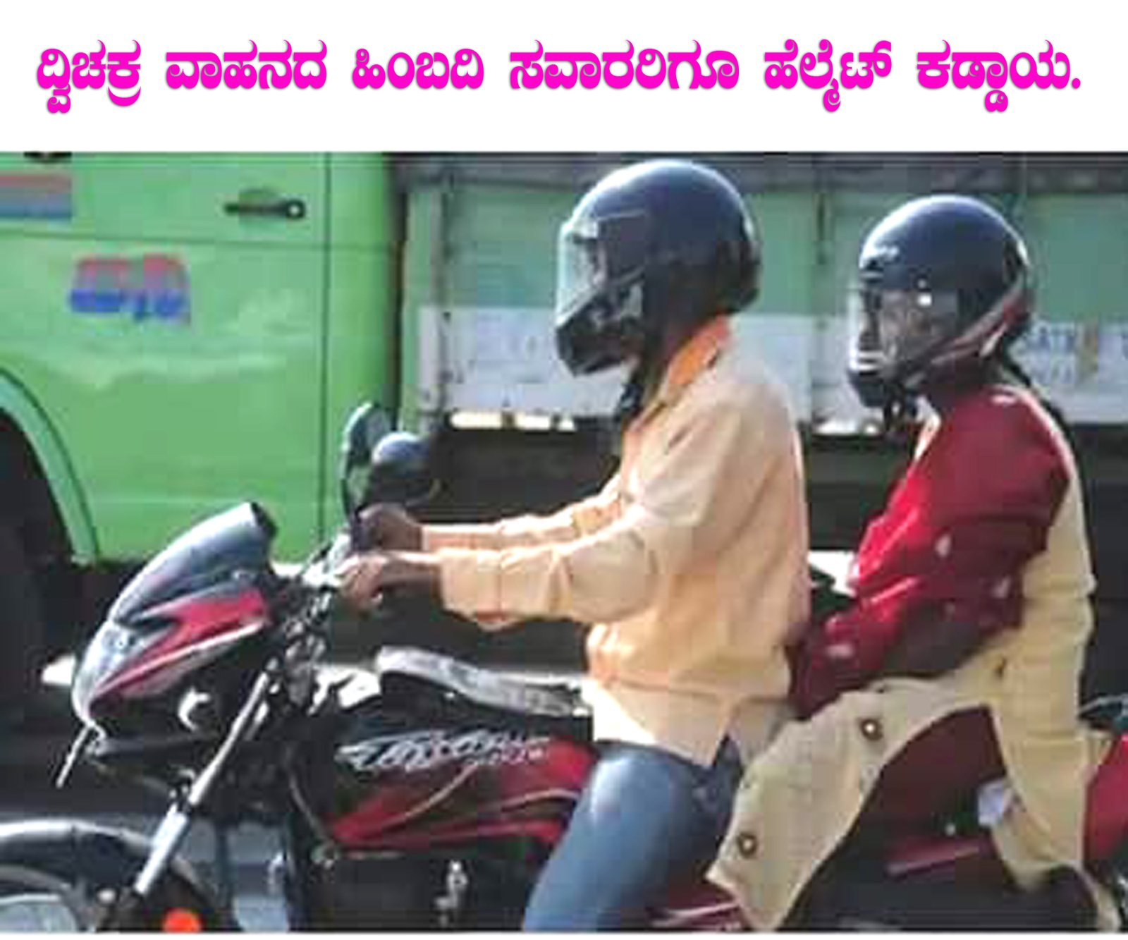 ದ್ವಿಚಕ್ರ ವಾಹನದ ಹಿಂಬದಿ ಸವಾರರಿಗೂ ಹೆಲ್ಮೆಟ್ ಕಡ್ಡಾಯ.