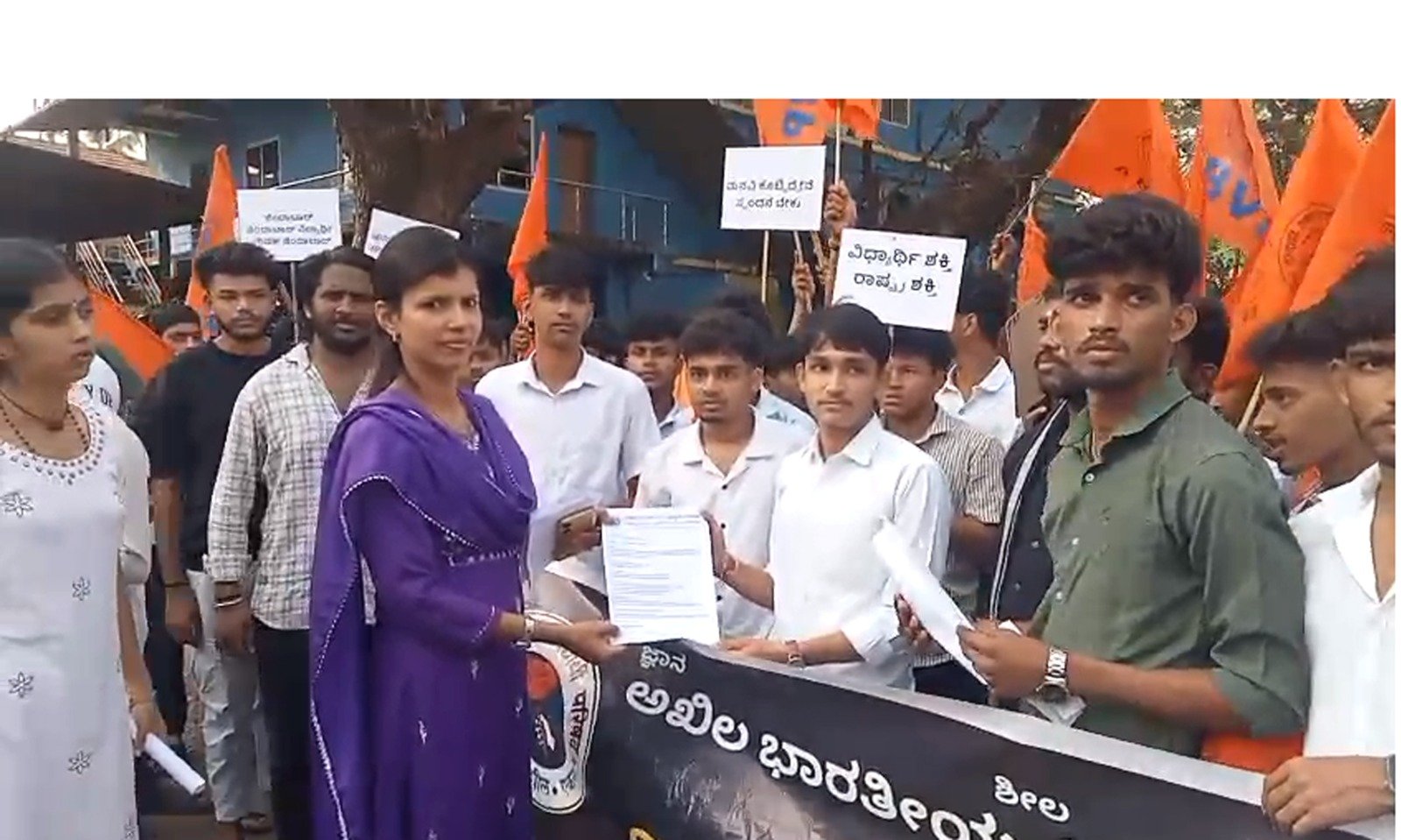 ಗ್ರಾಮೀಣ ಮಾರ್ಗಗಳಲ್ಲಿ ಬಸ್ ಸೌಲಭ್ಯ ಕೊರತೆ: ಎಬಿವಿಪಿ ನೇತೃತ್ವದಲ್ಲಿ ಪ್ರತಿಭಟನೆ