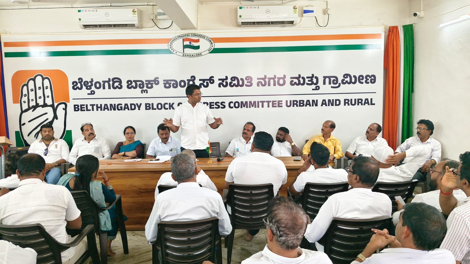 ಸ್ಥಳೀಯ ಸಂಸ್ಥೆಗಳ ಚುನಾವಣೆಗೆ ಸಜ್ಜಾಗುವ ನಿಟ್ಟಿನಲ್ಲಿ ಬೆಳ್ತಂಗಡಿ ಬ್ಲಾಕ್ ಕಾಂಗ್ರೆಸ್ ವತಿಯಿಂದ ಮಹತ್ವದ ಸಭೆ ನಡೆಯಿತು. ಬೆಳ್ತಂಗಡಿ ವಿಧಾನಸಭಾ ಕ್ಷೇತ್ರದ ಬ್ಲಾಕ್ ಕಾಂಗ್ರೆಸ್ ಕಛೇರಿಯಲ್ಲಿ ಕೆಪಿಸಿಸಿ ಪ್ರಧಾನ ಕಾರ್ಯದರ್ಶಿ ಬಿ.ಕೆ. ಶಿವರಾಂ ನೇತೃತ್ವದಲ್ಲಿ ಈ ಸಭೆ ಆಯೋಜಿಸಲಾಗಿದ್ದು, ಮುಂದಿನ ಸ್ಥಳೀಯ ಸಂಸ್ಥೆಯ ಚುನಾವಣೆಗಳ ತಯಾರಿ ಕುರಿತು ಗಂಭೀರ ಚರ್ಚೆ ನಡೆಯಿತು.