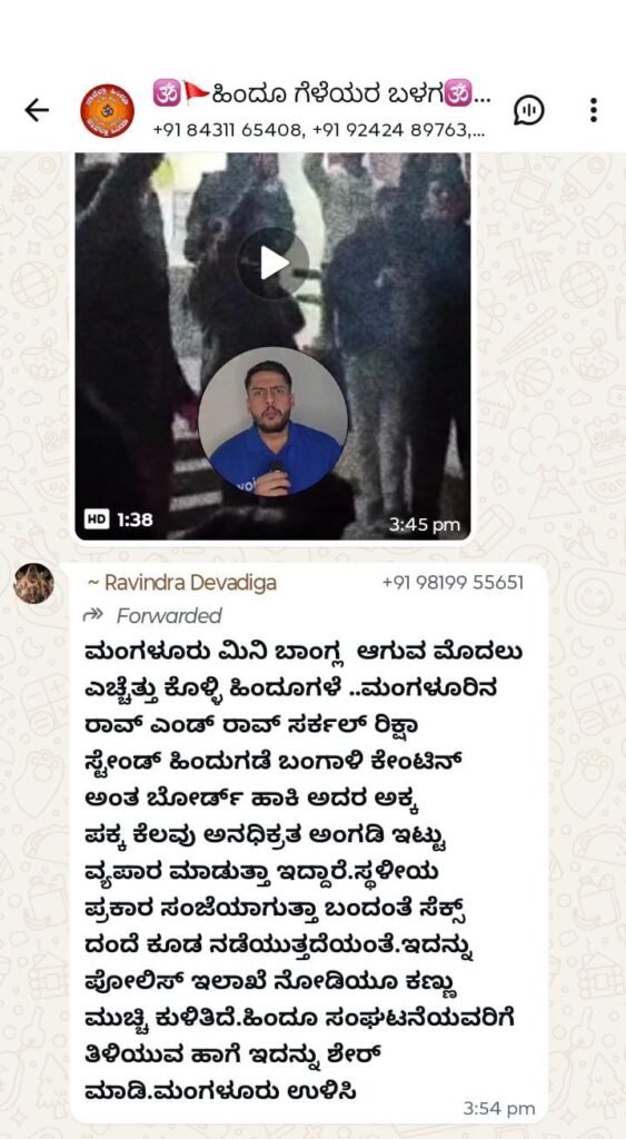 ‘ಹಿಂದೂ ಗೆಳೆಯರ ಬಳಗ’ ಎಂಬ ವಾಟ್ಸಾಪ್ ಗ್ರೂಪ್ನಲ್ಲಿ ಅಮಾಯಕರನ್ನು ಗುರಿಯಾಗಿಸಿ ಸಂದೇಶವೊoದನ್ನು ಪೋಸ್ಟ್ ಮಾಡಿರುವುದು ಎಲ್ಲೆಡೆ ಹರಿದಾಡುತ್ತಿದ್ದು, ಇಂತಹ ಪೋಸ್ಟ್ ಮಾಡಿದ ವಾಟ್ಸಾಪ್ ಸಂದೇಶಗಳಿoದ ಅಮಾಯಕರ ವಿರುದ್ಧ ದಾಳಿಗೆ ಕಾರಣವಾಗಬಹುದು ಎಂದು ಪ್ರಕರಣವನ್ನು ಪರಿಶೀಲಿಸಿ ಪೊಲೀಸರು ಸತ್ಯಾಂಶವನ್ನು ಬಯಲಿಗೆಳೆದು ಅರೋಪಿಗಳ ಮೇಲೆ ಕಣ್ಣಿಟ್ಟಿದ್ದಾರೆ. ಇಂತಹ ಸಂದೇಶಗಳನ್ನು ಪೋಸ್ಟ್ ಮಾಡಿದ್ದಕ್ಕಾಗಿ ಈಗಾಗಲೇ ಇಬ್ಬರು ಜನರ ವಿರುದ್ಧ ಎಫ್ಐಆರ್ ಕೂಡಾ ದಾಖಲಿಸಲಾಗಿದ್ದು, ಅವರ ಬಂಧನಕ್ಕೆ ಪೊಲೀಸರು ಬಲೆ ಬೀಸಿದ್ದಾರೆ.