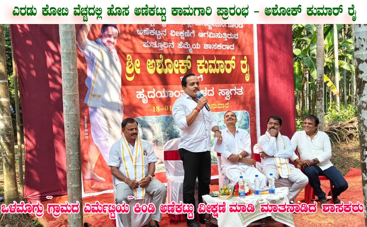 ಜನವರಿ18 ರಂದು ಒಳಮೊಗ್ರು ಗ್ರಾಮದ ಎರ್ಮೆಟ್ಟಿಯ ಕಿಂಡಿ ಅಣೆಕಟ್ಟು ವೀಕ್ಷಣೆ ಮಾಡಿದ ಶಾಸಕ ಅಶೋಕ್ ರೈಯವರು ಈ ಕಿಂಡಿಅಣೆಕಟ್ಟಿಗೆ ಎರಡು ಕೋಟಿ ರೂ ಪ್ರಸ್ತಾವನೆ ಕಳುಹಿಸಲಾಗಿದ್ದು, ಮುಂದಿನ ವರ್ಷ ಹೊಸ ಅಣೆಕಟ್ಟು ಕಾಮಗಾರಿ ಪ್ರಾರಂಭವಾಗಲಿದೆ ಎಂದು ಭರವಸೆ ನೀಡುವ ಮೂಲಕ ಈ ಭಾಗದ ಕೃಷಿಕರು ಉದ್ಯಮಿಗಳು ಆಗಿರುವ ಸತೀಶ್ ರೈ ನೀರ್ಪಾಡಿ ಮತ್ತು ನೊಂದ ಕೃಷಿಕರ ಬಹುಸಮಯಗಳ ಬೇಡಿಕೆಯನ್ನು ಈಡೇರಿಸಿದ್ದಾರೆ. ನಮ್ಮ ಬೇಡಿಕೆಗೆ ಸ್ಪಂದಿಸುವ ಜನಪ್ರತಿನಿಧಿಗಳು ಇಲ್ಲವೇ ಇಲ್ಲ ಎಂಬ ಬೇಸರದಲ್ಲಿದ ಜನರಿಗೆ ಶಾಸಕ ಆಶೋಕ್ ಕುಮಾರ್ ರೈ ಸಂಕಷ್ಟ ನಿವಾರಕನಾಗಿ ಬಂದಿದ್ದು, ನಾವೂ ಕೂಡಾ ಅವರೊಂದಿಗೆ ಸದಾ ಇದ್ದೇವೆ ಎಂದು ಮೀಡಿಯಾಗೆ ತಿಳಿಸಿದ್ದಾರೆ.