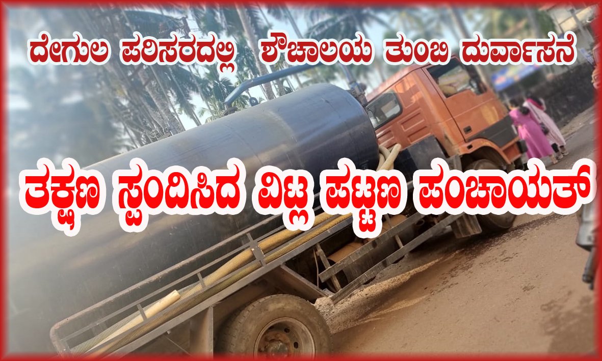 ವಿಟ್ಲ ದೇಗುಲ ಪರಿಸರದಲ್ಲಿ ದುರ್ನಾತ; ತಕ್ಷಣ ಸ್ಪಂದಿಸಿದ ವಿಟ್ಲ ಪಟ್ಟಣ ಪಂಚಾಯತ್; ತ್ಯಾಜ್ಯ ವಿಲೇವರಿಯ ಟ್ಯಾಂಕರ್ ಮೂಲಕ ಶೌಚಾಲಯದ ಗುಂಡಿ ಸ್ವಚ್ಛ; ದೀವಟಿಗೆ ನ್ಯೂಸ್ ಮಿಡಿಯಾ ಫಲಶ್ರುತಿ