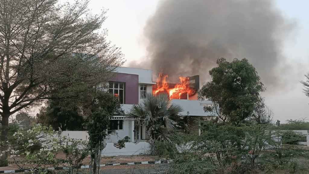 ನೂರು ಎಕರೆ ವಿಸ್ತೀರ್ಣದ ಜಿ ಎಸ್‌ಎಂಆರ್ ಲೇಔಟ್‌ನಲ್ಲಿ ನಿರ್ಮಿಸಲಾದ ವಸತಿ ಮನೆಯೇ ಬೆಂಕಿಗೆ ಆಹುತಿಯಾಗಿದ್ದು, ಕೆಲವೇ ನಿಮಿಷಗಳಲ್ಲಿ ಹೊತ್ತಿ ಉರಿದಿದೆ.