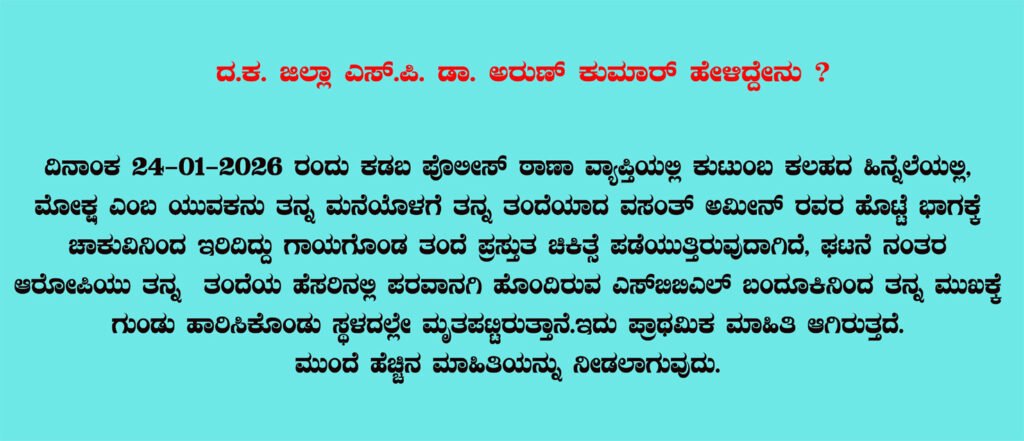 Bantawala4 weeks agoನಿನ್ನೆಯಿಂದ ನಿಗೂಢವಾಗಿ ನಾಪತ್ತೆಯಾಗಿದ್ದ ತಲೆಕ್ಕಿ ಮಹಮ್ಮದ್ ಹಾಜಿ.. ; ಇಂದು ಸಂಜೆ ನೇತ್ರಾವತಿ ನದಿಯಲ್ಲಿ ಪತ್ತೆ.. ಬಂಟ್ವಾಳ ನಗರ ಠಾಣಾ ವ್ಯಾಪ್ತಿಯಲ್ಲಿ ಪ್ರಕರಣ..