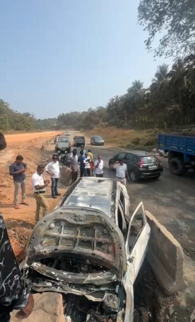 ರಸ್ತೆ ಕಾಮಗಾರಿ ಸಂದರ್ಭ ರಸ್ತೆಗೆ ಇಡುವ ಡಿವೈಡರ್‌ಗೆ ಡಿಕ್ಕಿ ಹೊಡೆದ ಬಳಿಕ ಮೋರಿಗೆ ಅಪ್ಪಳಿಸಿಕಾರು ಅಪಘಾತವಾಗಿ ಬೆಂಕಿ ಹತ್ತಿಕೊಂಡು ಸಂಪೂರ್ಣವಾಗಿ ಬೆಂಕಿಗಾಹುತಿಯಾದ ಘಟನೆಯೊಂದು ಮಂಗಳೂರು- ಬೆಂಗಳೂರು ರಾಷ್ಟ್ರೀಯ ಹೆದ್ದಾರಿಯಲ್ಲಿ ಜ.30ರ ಮದ್ಯಾಹ್ನ ನಡೆದಿದೆ.