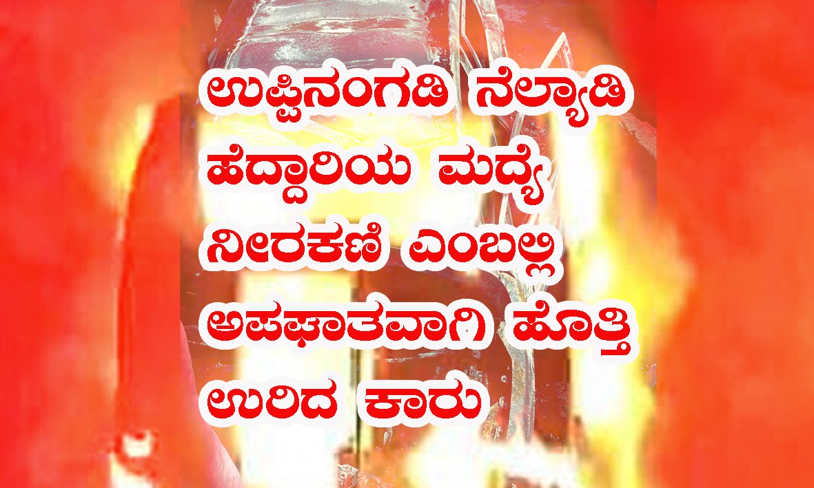 ರಸ್ತೆ ಕಾಮಗಾರಿ ಸಂದರ್ಭ ರಸ್ತೆಗೆ ಇಡುವ ಡಿವೈಡರ್‌ಗೆ ಡಿಕ್ಕಿ ಹೊಡೆದ ಬಳಿಕ ಮೋರಿಗೆ ಅಪ್ಪಳಿಸಿಕಾರು ಅಪಘಾತವಾಗಿ ಬೆಂಕಿ ಹತ್ತಿಕೊಂಡು ಸಂಪೂರ್ಣವಾಗಿ ಬೆಂಕಿಗಾಹುತಿಯಾದ ಘಟನೆಯೊಂದು ಮಂಗಳೂರು- ಬೆಂಗಳೂರು ರಾಷ್ಟ್ರೀಯ ಹೆದ್ದಾರಿಯಲ್ಲಿ ಜ.30ರ ಮದ್ಯಾಹ್ನ ನಡೆದಿದೆ.