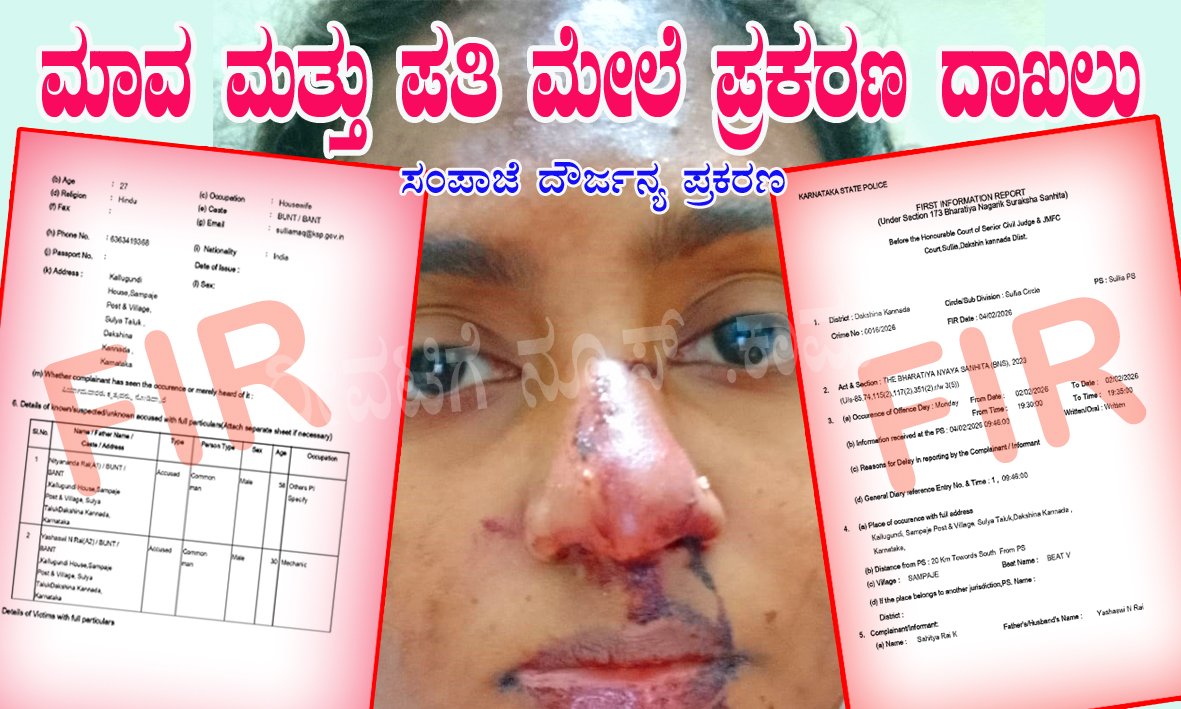 ಸಂಪಾಜೆಯಲ್ಲಿ ಮಾವ ಮತ್ತು ಪತಿಯಿಂದ ದೌರ್ಜನ್ಯಕ್ಕೀಡಾದ ಪ್ರಕರಣ ಸುಳ್ಯ ಠಾಣೆಯಲ್ಲಿ ಮಾವ ಮತ್ತು ಪತಿಯ ಮೇಲೆ ಪ್ರಕರಣ ದಾಖಲು