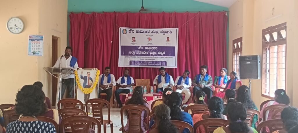 ರಾಜ್ಯದಲ್ಲೇ ಪ್ರಥಮ ಬಾರಿಗೆ ಬೆಳ್ತಂಗಡಿಯಲ್ಲಿ ಪಟ್ಟಣ , ನಗರ ಪಂಚಾಯತ್ , ಪುರಸಭೆ ಮತ್ತು ಗ್ರಾಮ ಪಂಚಾಯತ್ ಪೌರ ಕಾರ್ಮಿಕರ ದ.ಕ ಜಿಲ್ಲಾ ಮಟ್ಟದ ಜಂಟಿ ಸಮಾವೇಶ ನಡೆದಿದೆ. ಮುಂದಿನ ದಿನಗಳಲ್ಲಿ ಇಡೀ ರಾಜ್ಯದಾದ್ಯಂತ ಸಂಘಟನೆ ವಿಸ್ತರಿಸಲಾಗುವುದು ಎಂದ ಅವರು ಗ್ರಾಮೀಣ ಪ್ರದೇಶಗಳಲ್ಲಿ ಪೌರ ಕಾರ್ಮಿಕರಿಗೆ ಬದುಕುವ ಕನಿಷ್ಟ ವೇತನ ನೀಡದೆ ಜೀತದಾಳುಗಳಂತೆ ದುಡಿಸಲಾಗುತ್ತಿರುವುದನ್ನು ಸಹಿಸಲು ಸಾಧ್ಯವಿಲ್ಲ ಎಂದ ಅವರು ಕಾರ್ಮಿಕ ಕಾಯ್ದೆಗಳನ್ನು ಉಲ್ಲಂಘಿಸಿ ಕನಿಷ್ಠ ವೇತನ ನೀಡದೆ ದುಡಿಸುತ್ತಿರುವುದು ಸಂವಿಧಾನ ವಿರೋಧಿ ನಡೆಯಾಗಿದೆ ಮತ್ತು ಅಪರಾಧವಾಗಿದೆ. ಪೌರ ಹಕ್ಕುಗಳ ರಕ್ಷಣೆಗಾಗಿ ಸಂಘಟನೆಯನ್ನು ಬಲಿಷ್ಠಗೊಳಿಸಿ , ಹೋರಾಟ ನಡೆಸಬೇಕಾದ ಅಗತ್ಯವಿದೆ. ಹೋರಾಟದಲ್ಲಿ ಸೋಲು ಎಂಬುದಿಲ್ಲ , ಅಂತಿಮವಾಗಿ ಗೆಲುವು ನಮ್ಮದೇ ಎಂಬುದನ್ನು ನಾವು ತೋರಿಸುವ ಅಗತ್ಯವಿದೆ ಎಂದು ಹೇಳಿದರು.
