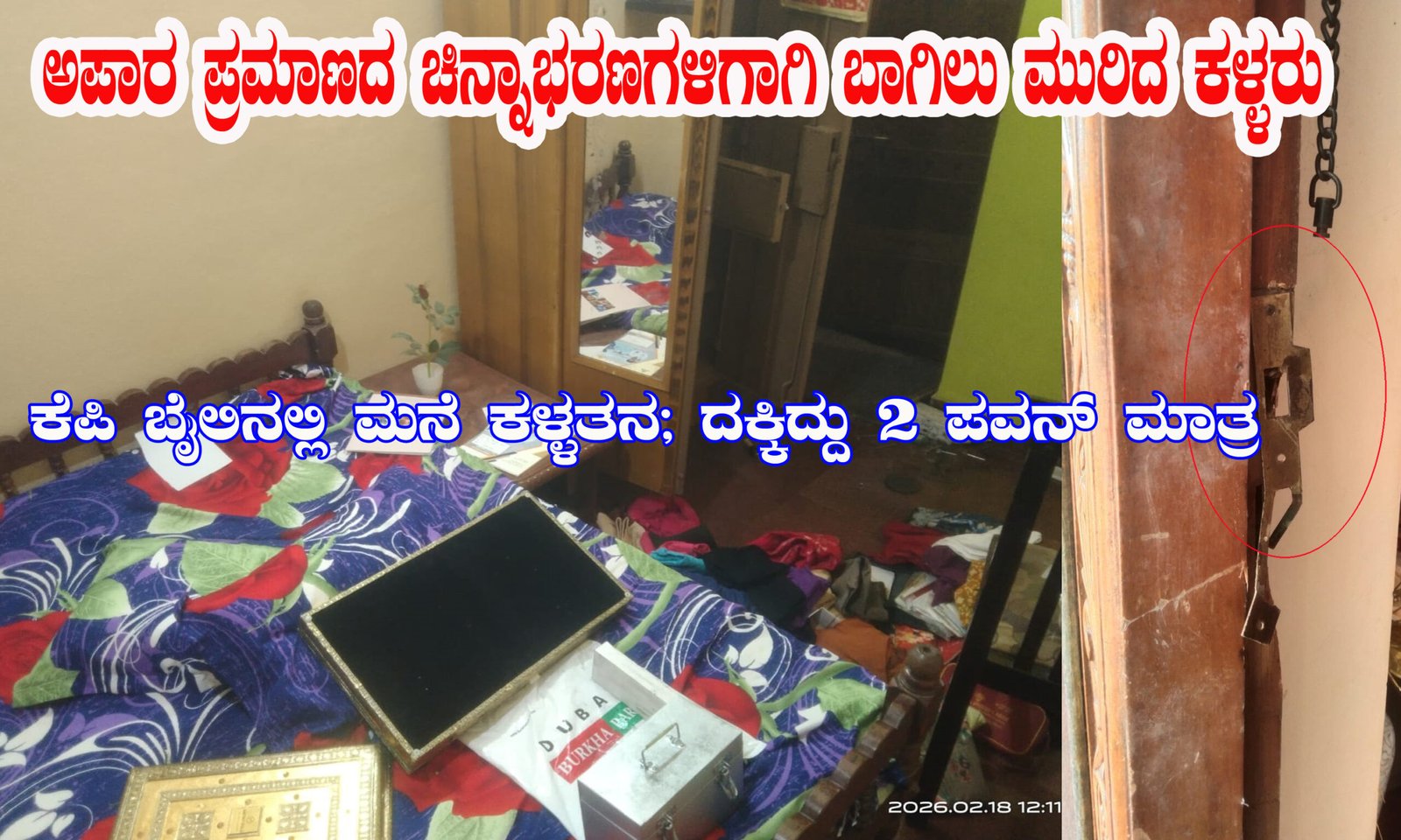 ಅಪಾರ ಪ್ರಮಾಣದ ಚಿನ್ನಾಭರಣ ಲೂಟಿ ಹೊಡೆಯುವ ಕನಸು ಕಂಡ ಖದೀಮರು ಮನೆಯವರು ಯಾರೂ ಇಲ್ಲದ ಸಂದರ್ಭ ಬಾಗಿಲು ಮುರಿದು ಒಳನುಗ್ಗಿ ಸಾಕಷ್ಟು ಹೊತ್ತು ಜಾಲಾಡಿದ್ದಾರೆ. ಆದರೆ ಮನೆಯವರ ಅದೃಷ್ಟ ಚೆನ್ನಾಗಿದ್ದ ಕಾರಣ ಕಳ್ಳರಿಗೆ ದಕ್ಕಿದ್ದು ಕೇವಲ ಎರಡು ಪವನ್ ಚಿನ್ನಾಭರಣ..ಮತ್ತೆ ಒಂದಿಷ್ಟು ವಿದೇಶಿ ಕರೆನ್ಸಿಗಳು. ಇದು ಬಂಟ್ವಾಳ ತಾ.ಕೊಳ್ನಾಡು ಗ್ರಾಮದ ಕೆ.ಪಿ.ಬೈಲುನಲ್ಲಿ ನಡೆದ ಮನೆ ಕಳ್ಳತನದ ಹಿಸ್ಟರಿ.