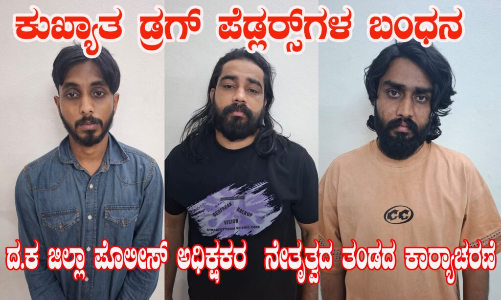 ದ.ಕ ಜಿಲ್ಲಾ ಪೊಲೀಸ್ ಆಧೀಕ್ಷಕರ ನೇತೃತ್ವದ ತಂಡ ಜಿಲ್ಲೆಯಾದ್ಯಂತ ಮಾದಕ ವಸ್ತು ಮಾರಾಟ ಹಾಗೂ ಸೇವನೆ ಮಾಡುವವರ ವಿರುದ್ದ ವಿಶೇಷ ಕಾರ್ಯಾಚರಣೆ ನಡೆಸುತ್ತಿದ್ದು, ಅಂತರ್ರಾಜ್ಯ ಮಟ್ಟದಲ್ಲಿ ಕೊಂಡಿಯಾಗಿದ್ದ 3 ಜನ ಕುಖ್ಯಾತ ಮಾದಕ ವಸ್ತು ಮಾರಾಟಗಾರರ ಜಾಲದ ಪ್ರಮುಖ ಆರೋಪಿಗಳನ್ನು ಬಂಧಿಸಿ ಅಪಾರ ಪ್ರಮಾಣದ ಮಾದಕ ವಸ್ತುಗಳ ಜೊತೆಗೆ ವಾಹನ, ಮೊಬೈಲ್, ಮಾರಕಾಸ್ತ್ರಗಳನ್ನು ವಶಪಡಿಸಿಕೊಂಡ ಪೊಲೀಸರ ತಂಡ ಡ್ರಗ್ಗ್ ಪೆಡ್ಲರ್ಸ್ಗಳಿಗೆ ನಡುಕ ಹುಟ್ಟಿಸಿದ್ದಾರೆ. ದ.ಕ ಜಿಲ್ಲಾ ಪೊಲೀಸ್ ಆಧೀಕ್ಷಕರ ವಿಶೇಷ ತಂಡದಿಂದ ಮಾದಕ ವಸ್ತು ಮಾರಾಟಗಾರರ ಜಾಲದ … Continue reading ಅಂತರ್ ರಾಜ್ಯ ಮಾದಕ ವಸ್ತು ಮಾರಾಟಗಾರರ ಬಂಧನಲಕ್ಷಾಂತರ ಮೌಲ್ಯದ ಮಾದಕ ವಸ್ತು, ವಾಹನ, ಮಾರಕಾಸ್ತ್ರಗಳ ವಶ.ದ.ಕ ಜಿಲ್ಲಾ ಪೊಲೀಸ್ ಆಧೀಕ್ಷಕರ ನೇತೃತ್ವದ ತಂಡದ ಕಾರ್ಯಾಚರಣೆ
