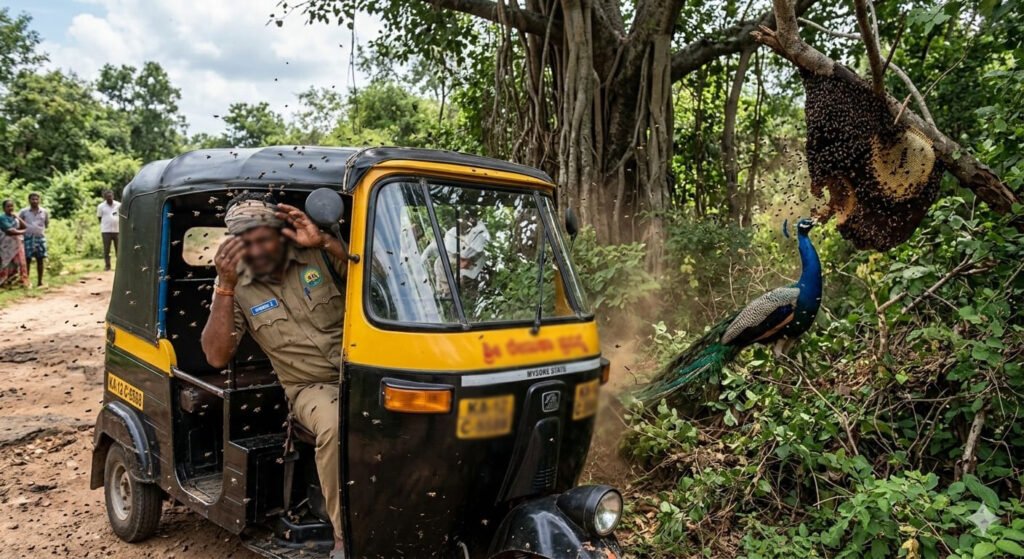 ಆಟೋ ಚಾಲಕನ ಮೇಲೆ ಹೆಜ್ಜೇನು ದಾಳಿ..ಗಂಭೀರ ಸ್ಥಿತಿಯಲ್ಲಿದ್ದ ಆಟೋ ಚಾಲಕ ಆಸ್ಪತ್ರೆಗೆ ದಾಖಲು.ಹೆಜ್ಜೇನು ಸವಿಯಲು ಬಂದ ನವಿಲಿನ ಆವಾಂತರ
