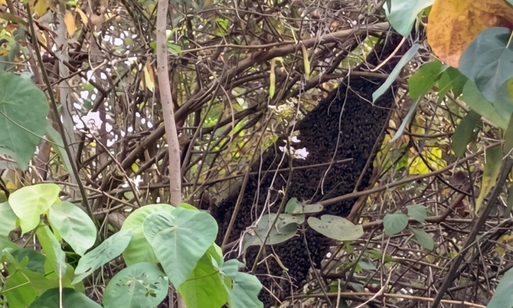 ಸಾಲೆತ್ತೂರು ಮೈದಾನದ ಆಟೋ ಪಾರ್ಕಿಂಗ್ ಸಮೀಪದ ಗ್ರಾಮ ಪಂಚಾಯತ್ ಕಟ್ಟಡದ ಹಿಂಬದಿಯ ಮರವೊಂದರಲ್ಲಿ ಹೆಜ್ಜೇನು(ಪೆರಿಯ)ಆಶ್ರಯ ನಡೆದಿದೆ.