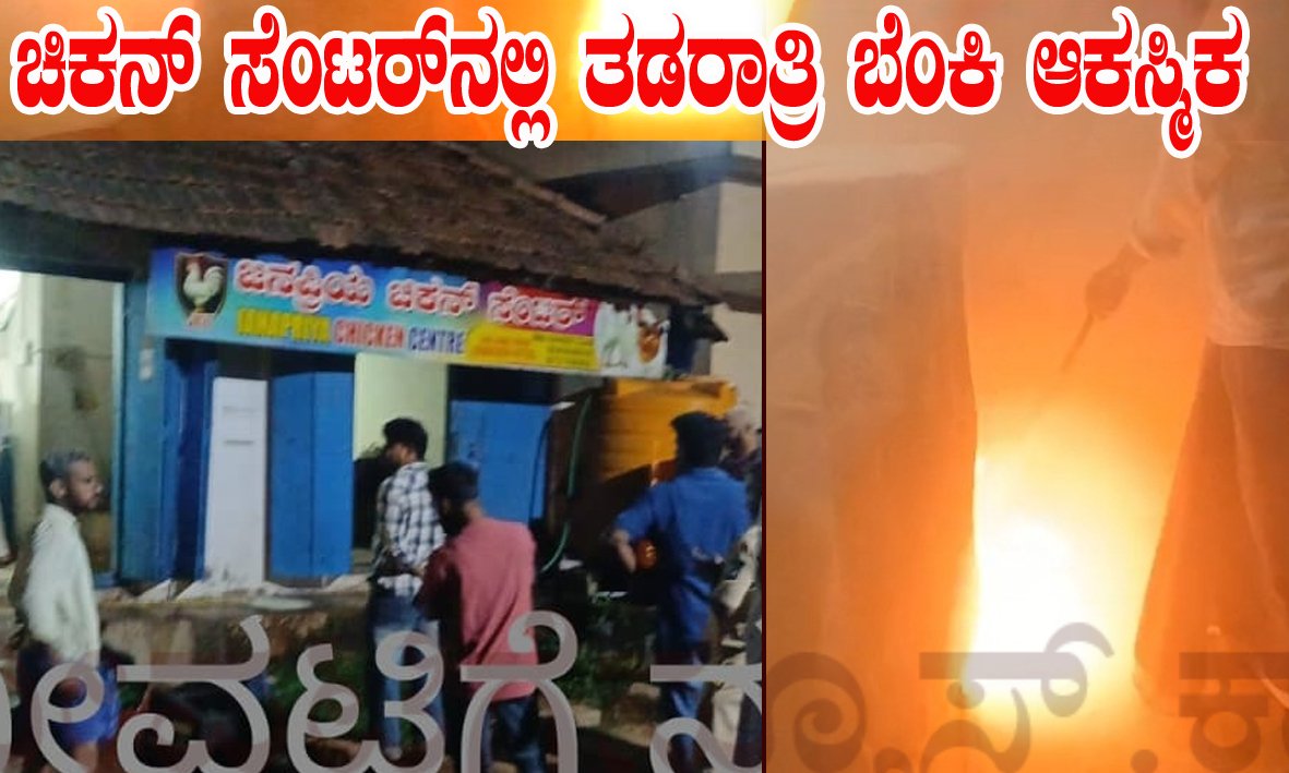 ಚಿಕನ್ ಸೆಂಟರ್‌ನಲ್ಲಿ ತಡರಾತ್ರಿ ಬೆಂಕಿ ಆಕಸ್ಮಿಕ – ಸ್ಥಳೀಯರ ಸಮಯಪ್ರಜ್ಞೆಯಿಂದ ತಪ್ಪಿದ ಭಾರಿ ಅನಾಹುತ