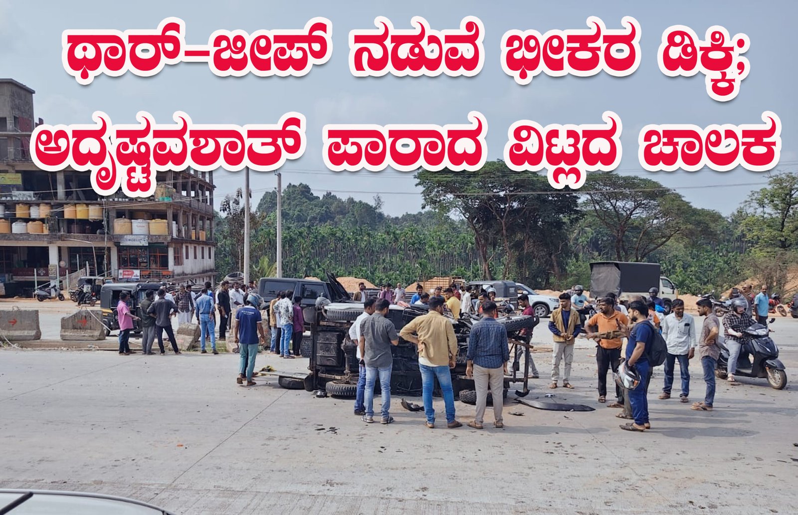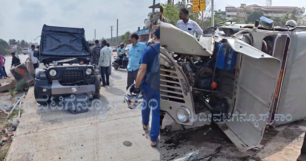 ಉಪ್ಪಿನಂಗಡಿಯಲ್ಲಿ ಥಾರ್-ಜೀಪ್ ನಡುವೆ ಭೀಕರ ಡಿಕ್ಕಿ; ಅದೃಷ್ಟವಶಾತ್ ಪ್ರಾಣಾಪಾಯದಿಂದ ಪಾರಾದ ವಿಟ್ಲದ ಚಾಲಕ