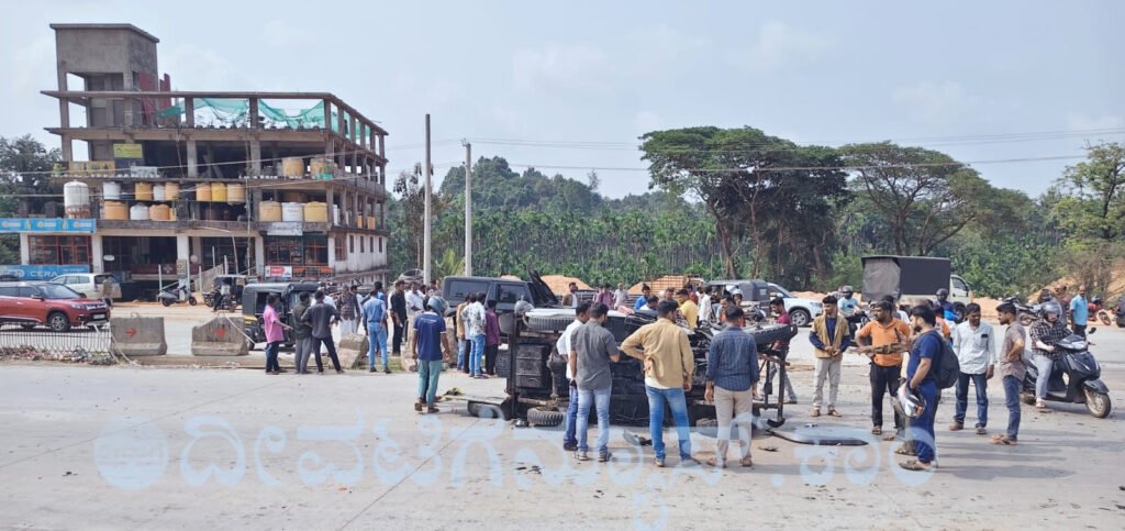 ಪಲ್ಟಿಯಾದ ಜೀಪು – ತಪ್ಪಿದ ಭಾರಿ ಅನಾಹುತ: