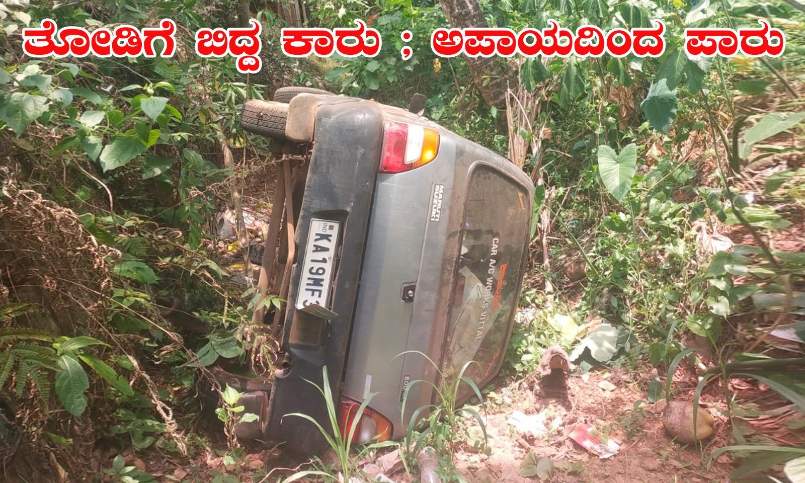 ತೋಡಿಗೆ ಬಿದ್ದ ಕಾರು..ಪ್ರಯಾಣಿಕರು ಅದೃಷ್ಟವಶಾತ್ ಪಾರು..