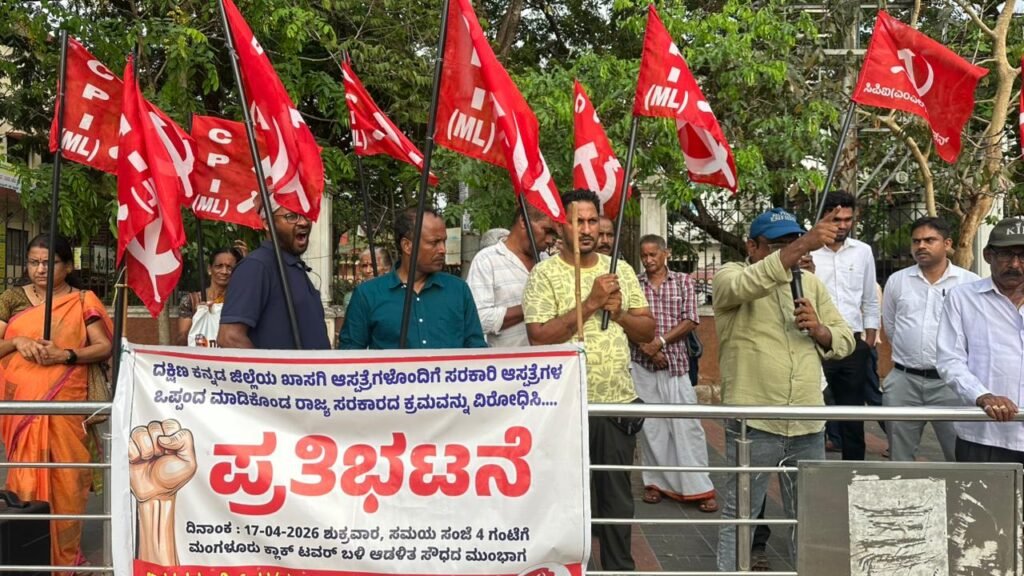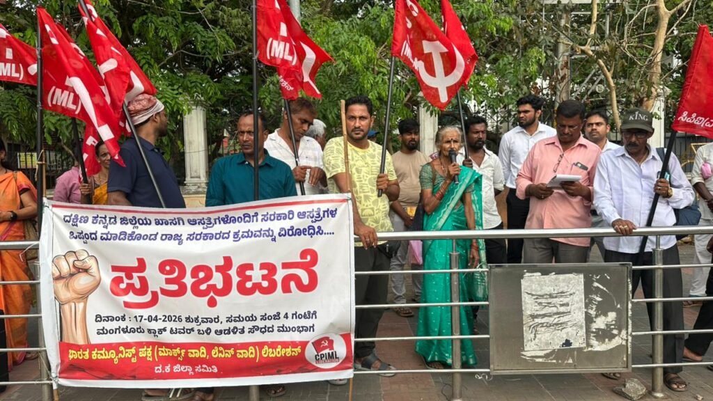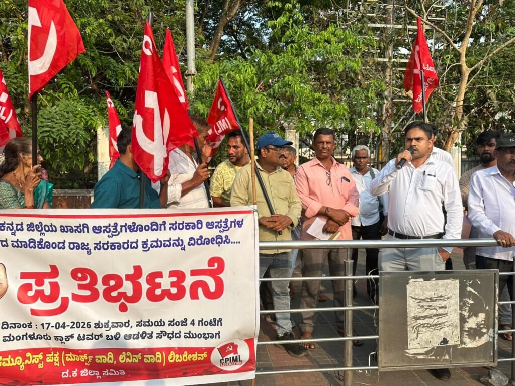 ಮಂಗಳೂರು : ಸರಕಾರಿ ಆಸ್ಪತ್ರೆಗಳ ನ್ನು ಖಾಸಗಿ ಆಸ್ಪತ್ರೆಗಳ ಜೊತೆ ಒಪ್ಪಂದ ಮಾಡಿಕೊಂಡಿರುವ ರಾಜ್ಯ ಸರಕಾರದ ಕ್ರಮ ಖಂಡಿಸಿ ಇಂದು ಮಂಗಳೂರಿನ ಕ್ಲಾಕ್ ಟವರ್ ಬಳಿ ಭಾರತ ಕಮ್ಯೂನಿಸ್ಟ್ ಪಕ್ಷ( ಮಾರ್ಕ್ಸ್ ವಾದಿ ಲೆನಿನ್ ವಾದಿ) ಲಿಬರೇಶನ್ ವತಿಯಿಂದ ಇಂದು ಪ್ರತಿಭಟನೆ ನಡೆಯಿತು.