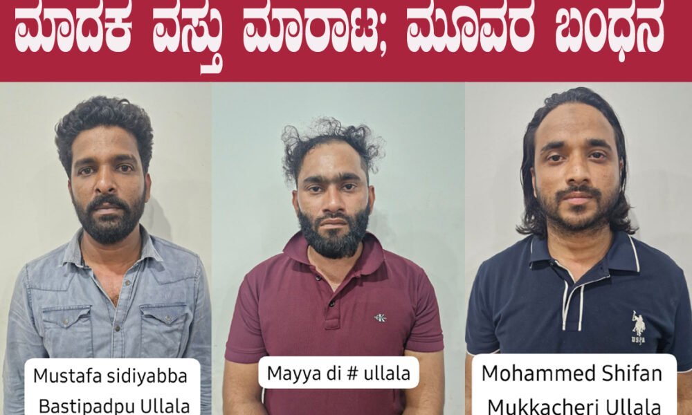 ಬೆಂಗಳೂರು ನಗರದಿಂದ ಮಾದಕವಸ್ತು MDMAಯನ್ನು ಖರೀದಿಸಿ ಮಂಗಳೂರಿಗೆ ತಂದು ಮಾರಾಟ ಮಾಡುತ್ತಿದ್ದ ಮೂವರು ಪೆಡ್ಲರುಗಳನ್ನು ಸಿಸಿಬಿ ಪೊಲೀಸರು ಬಂಧಿಸಿದ್ದಾರೆ. ಮಂಗಳೂರು ನಗರದ ಸಾರ್ವಜನಿಕರಿಗೆ ಹಾಗೂ ಕಾಲೇಜು ವಿದ್ಯಾರ್ಥಿಗಳಿಗೆ ಬೂದು ಬಣ್ಣದ ಸ್ವಿಪ್ಟ್ ಕಾರಿನಲ್ಲಿ ತಂದು ಉಳ್ಳಾಲ...
