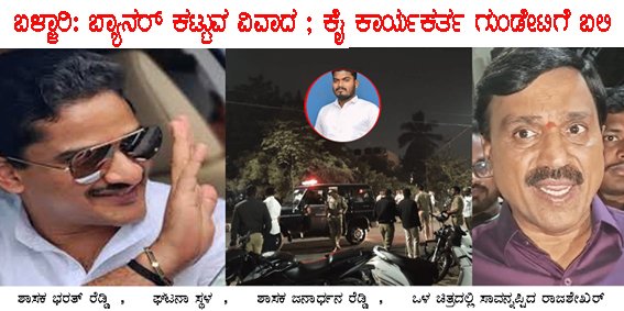 ಬಳ್ಳಾರಿ : ವಾಲ್ಮೀಕಿ ಪುತ್ಥಳಿ ಅನಾವರಣ ಬ್ಯಾನರ್ ವಿಚಾರವಾಗಿ ಬಳ್ಳಾರಿಯಲ್ಲಿ ಗುರುವಾರ ರಾತ್ರಿ ನಡೆದ ಗುಂಪು ಘರ್ಷಣೆಗೆ ಸಂಬoಧಿಸಿದoತೆ ನಗರ ಶಾಸಕ ನಾರಾ ಭರತ್ ರೆಡ್ಡಿ ಆಪ್ತ ಚಾನಾಳ್ ಶೇಖರ್ ನೀಡಿರುವ ದೂರಿಗೆ ಸಂಬoಧಿಸಿದoತೆ ನಗರದ...
