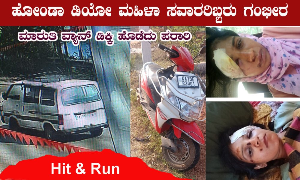 ಸಾಲೆತ್ತೂರು-ವಿಟ್ಲ ರಸ್ತೆಯ ಕಡಂಬು ಎಂಬಲ್ಲಿ ವಿಟ್ಲದ ಕಡೆಗೆ ಹೋಗುತ್ತಿದ್ದ ಹೋಂಡಾ ಡಿಯೋ ದ್ವಿಚಕ್ರ ವಾಹನಕ್ಕೆ ಅದೇ ರಸ್ತೆಯಲ್ಲಿ ಹಿಂದಿನಿಂದ ಬಂದ ಮಾರುತಿ ವ್ಯಾನ್ ವಾಹನ ಡಿಕ್ಕಿ ಹೊಡೆದು ಪರಾರಿಯಾಗಿದೆ. ಅಪಘಾತದ ತೀವ್ರತೆಗೆ ಡಿಯೋ ವಾಹನ ಸವಾರೆ...