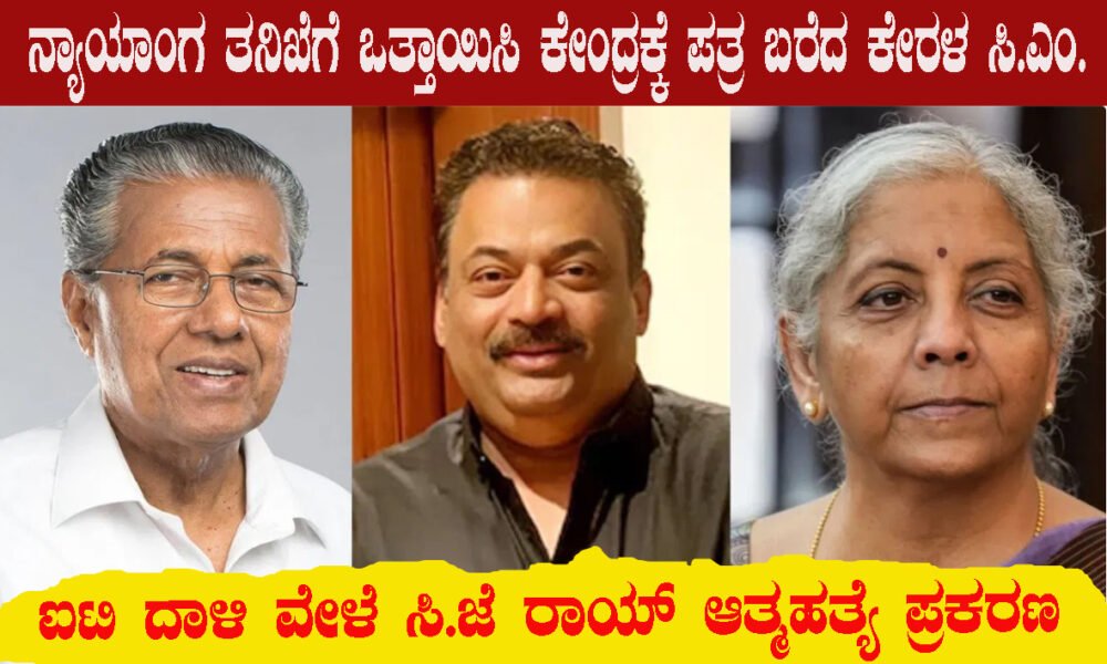 ತಿರುವನಂತಪುರ: ಬೆಂಗಳೂರಲ್ಲಿ ರಿಯಲ್ ಎಸ್ಟೇಟ್ ಉದ್ಯಮಿ ಸಿ.ಜೆ. ರಾಯ್ ಆತ್ಮಹತ್ಯೆ ಪ್ರಕರಣದ ತನಿಖೆಗೆ ಕರ್ನಾಟಕ ಸರ್ಕಾರ ಈಗಾಗಲೇ ಎಸ್ಐಟಿ ರಚಿಸಿದ್ದು, ಬೆಂಗಳೂರಿನ ಜಂಟಿ ಪೊಲೀಸ್ ಆಯುಕ್ತ ವಂಶಿಕೃಷ್ಣ ನೇತೃತ್ವದಲ್ಲಿ ತನಿಖೆ ನಡೆಯುತ್ತಿರುವ ಬೆನ್ನಲ್ಲೇ ಈ ಪ್ರಕರಣವನ್ನು...